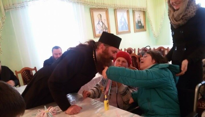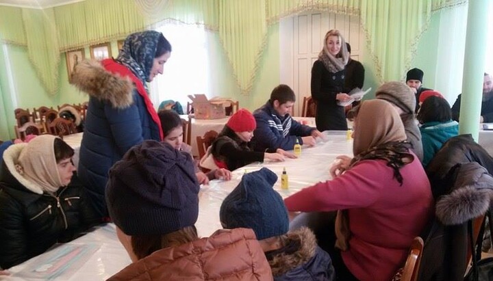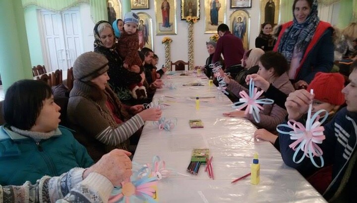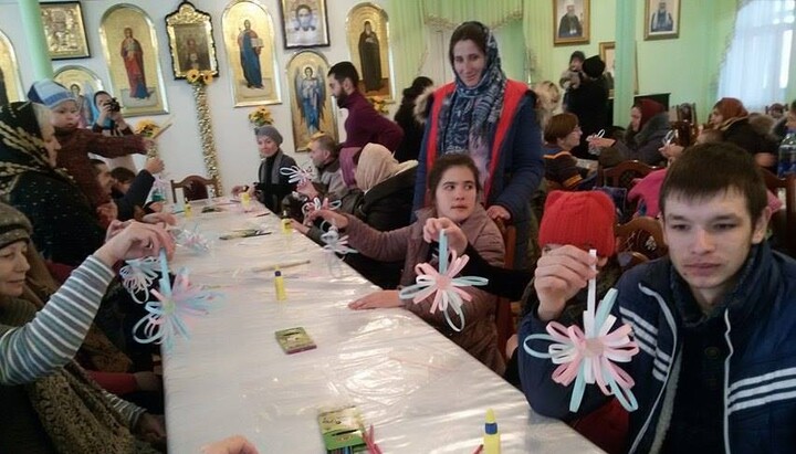 As expected, the work of the II Convention of children with special needs started with a prayer. Then the participants, together with the volunteers, parents and the priests, moved to a special room, where almost five hours with a lunch break they had a lively talk, made Christmas ornaments, worked with a psychologist and spoke about their successes and victories. In particular, for Elena and her three-year-old grandson Eugene, this is the second meeting of the kind. During the first convention, which took place in the village of Onishkovtsy on the Source of Holy Righteous Anna in the summer, her grandson tried to walk, bite and clench a fist.