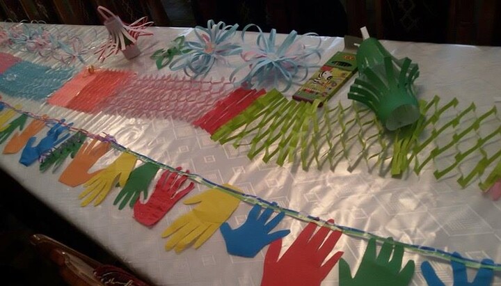 For the work to go smoothly and be more effective, the children were divided into two groups according to their age. The junior just sat on the floor working with a psychologist, the senior, together with volunteers of NGO "Dialogue", pasted, shaped and painted Christmas decorations.