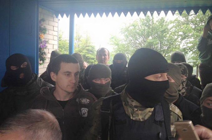 All the participants of the seizure were wearing masks or balaclavas, except the head of the Ternopil branch of "Right Sector" Basil Labaychuk.