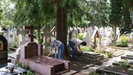 Orthodox youth maintains graves at the Russian cemetery near Paris