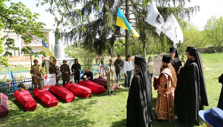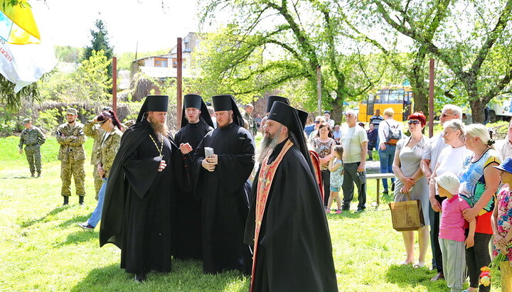 Before the remains of the soldiers fallen in the battlefield, a lithium was served. Cathedral prayer in memory of the deceased soldiers was offered by the inhabitants of the Holy Dormition Svyatogorsk Lavra, headed by Archimandrite Ambrose (Bobrov). Memorial chants were performed by the Svyatogorsk monks under the guidance of the regent hieromonk Raphael (Popov).