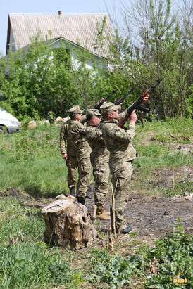 At the end of the rally, those present honored the fallen soldiers with a minute of silence, the army rifle party performing a three-volley salute into the air. Then the coffins with the remains of the soldiers were solemnly buried. Everyone tossed three grains of land to the grave at parting. Then the present people laid flowers to the monument erected on the burial site.