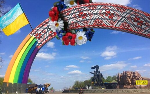 Initially, the monument was painted in the colors of the rainbow, but after protests of the residents of the capital, who saw in the new design the colors of the LGBT community, it was decided to variate the "gay symbol" with Ukrainian ornament.