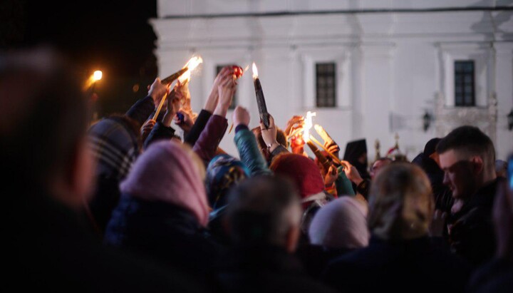After the Easter midnight service, at 12:00, the Primate of the UOC, the clergy and believers had a festive procession with candles, symbolizing the transition from the darkness of paganism to the light of Christianity.