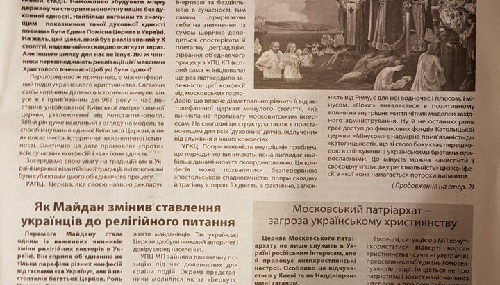In the cities of Ukraine there began a mass distribution of the special edition of the “Right Sector" newspaper, dedicated to the ecclesiastical issue.