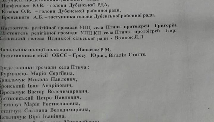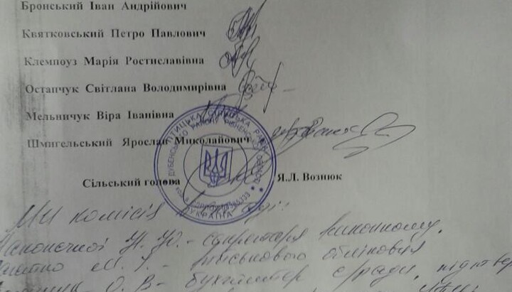 Representatives of the religious community of the UOC, together with the rector, did not sign the protocol of the meeting. Then the village head, apparently predicting the course of events, called on three officials of the village council, and the latter with their signatures approved the legitimacy of the decisions of this protocol.