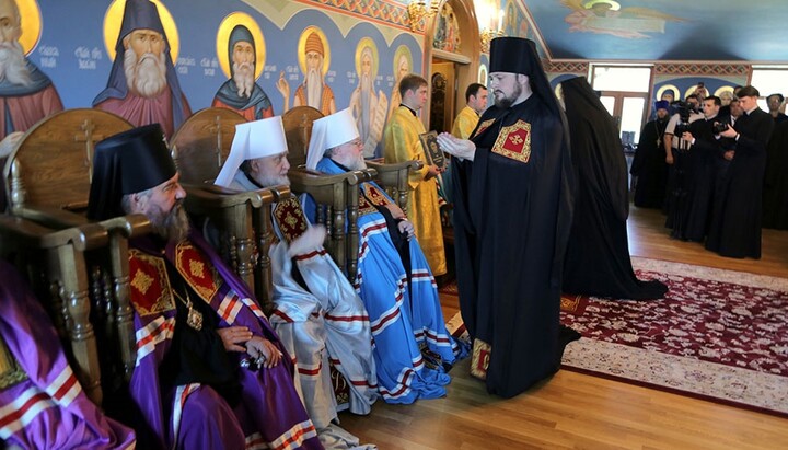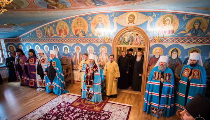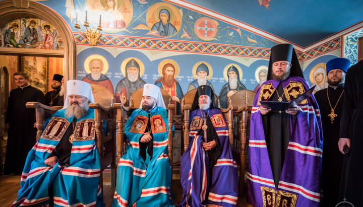 Metropolitans Hilarion of Donetsk and Mariupol and Mitrofan of Gorlovka and Slaviansk, which were discussed in the declaration of the Parliamentarian, attended the consecration ceremony of Archimandrite Spiridon (Golovastov) as Bishop of Dobropolye, vicar of the Gorlovka Eparchy, on June 16 at the Holy Trinity Church of the Panteleimon Monastery in Feofania (Kiev).