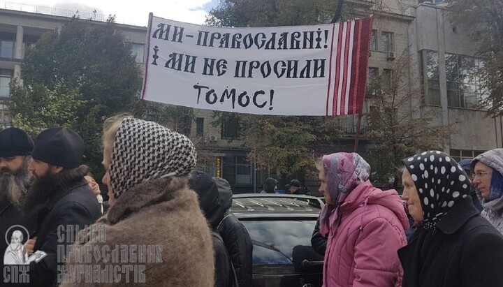 “We are Orthodox, and we didn’t ask for Tomos!”, “The sin of schism is not washed away with blood” – with such picket signs the UOC believers held a peaceful prayerful action under the windows of Phanar exarchs' residence.