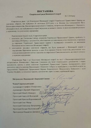 The Eparchial Council also stated that the Resolution of the Bishops’ Council of the Ukrainian Orthodox Church, taken on November 13, 2018, is a document binding on all bishops, clergy and laity of the UOC and confirmed its readiness to comply with the Resolution by the entire Vinnitsa eparchy.