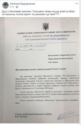 According to the document published in social networks, the administration of the Zavodskoy district of Nikolaev sent a directive to the head of the Education Department of the Nikolaev City Council on November 20, 2018.