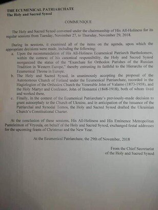 No date: Phanar prepares Statute of a new Church in Ukraine