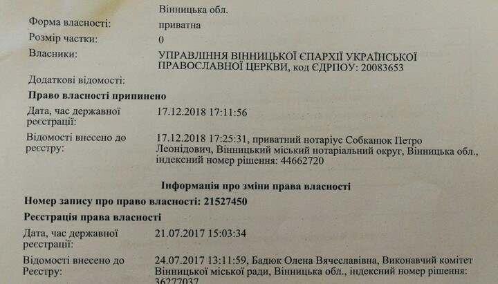 The transfer of the property complex of the Vinnitsa Eparchial Administration took place on the same day when the Synod of the UOC banned the metropolitan from ministry.