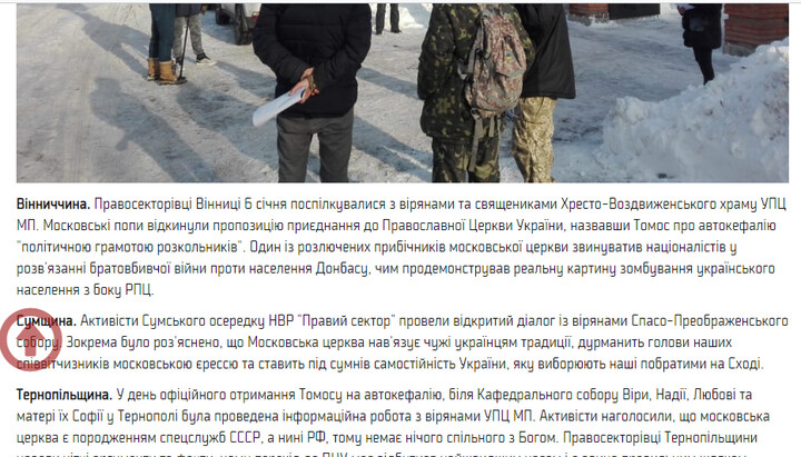 We recall that the “Right Sector” organized their “open dialogues” in support of the OCU at the churches of the UOC throughout Ukraine. “We want every Orthodox believer to go to the Orthodox Church of Ukraine and revive national identity. The Moscow Church forces Ukrainians to doubt their own independence and power, but right now the time has come to go peacefully to the Ukrainian Church,” the nationalists declared about the purpose of the action.