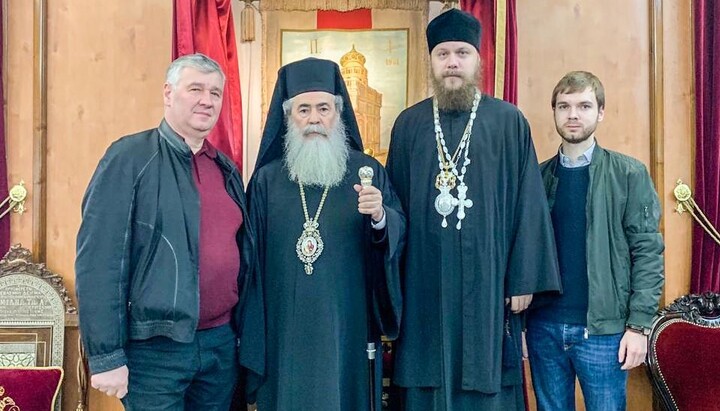 On January 22, 2019, the Patriarch of the Jerusalem Orthodox Church, His Beatitude Theophilos III, received pilgrims of the Ukrainian Orthodox Church in his residence, reports the press service of Odessa eparchy of the UOC.
