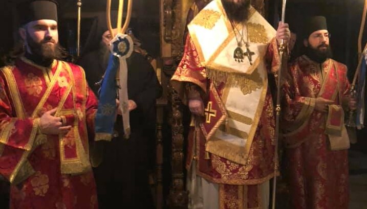 On February 8, 2019, the representative of the Ukrainian schismatic Church “Bishop” Pavel Yuristyi of Odessa and the Baltic celebrated the Divine Liturgy today at Pantocrator Monastery on Mt. Athos.