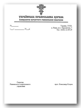 Vladyka Bartholomew confirmed the fake origin of his alleged “appeal” to the President of the Russian Federation, noting that the provided “document” was printed on an old sample form and did not have a seal of the Rovno eparchy of the UOC. For comparison, the press service published a form that is actually used in the official documentation of the eparchy.