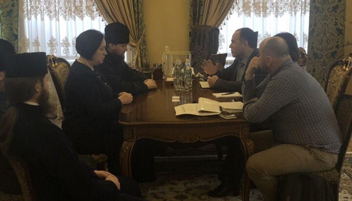 The activists of the new church structure came to the building of the eparchial administration precisely when the meeting of Metropolitan Nikodim (Gorenko) of Zhitomir and Novograd-Volynsky with OSCE SMM representatives took place.
