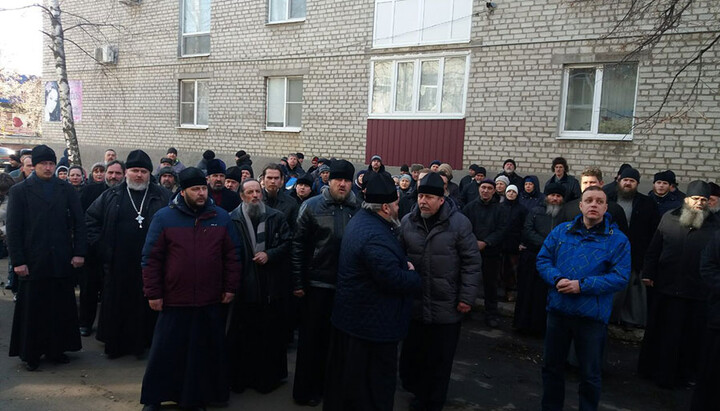 After the incident became known to the faithful of the diocese, they gathered with the clergy of the diocese at the police department to support Vladyka.