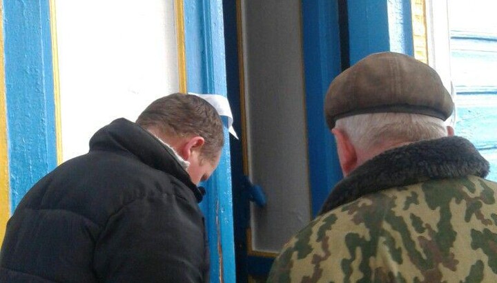 On March 1, 2019, at 16:45, the UOJ editor received a signal that the head of the Zdolbunov District State Administration Sergey Kondrachuk was using a crowbar to break down the doors of the St. Archangel Michael Church, which belongs to the community of the Ukrainian Orthodox Church in the village of Bushcha.