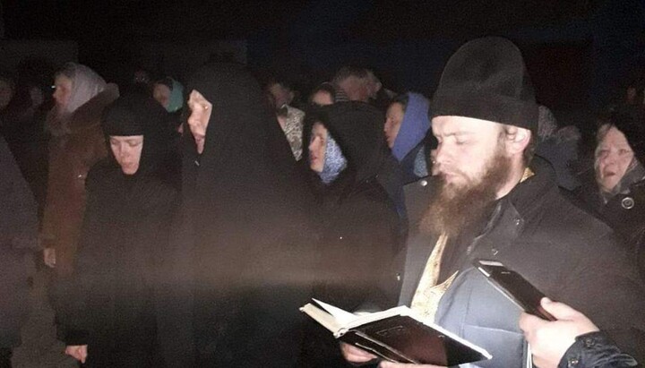 When it got dark, the UOC believers began the prayer standing in front of the entrance to the captured church, together with nuns from Derman and Gorodok nunneries who had come to support them.