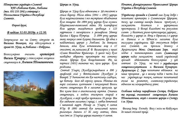 Earlier, on March 19, the Embassy of Ukraine, together with the Society of Ukrainians in Slovenia, published an announcement of the service, which also said: “The service will be headed by Archpriest Vasily Kuchirka, concelebrated by the local priest Fr. Alesh Tomašević. This publication has not yet been corrected.