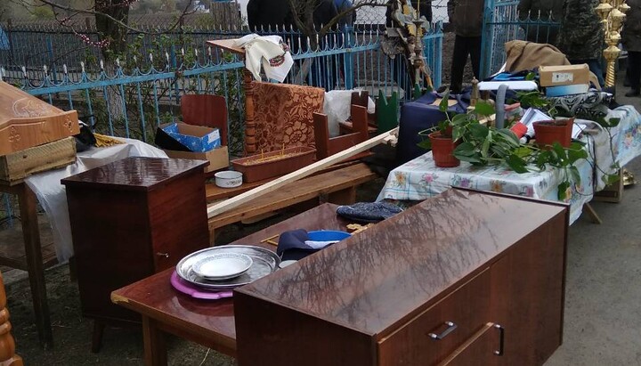 On the morning of April 12, at about 8:00, opponents of the canonical Church in the village of Kurozvany in Goshcha district in Rovno region broke down the doors to the church house, which has been serving as a home church for the parishioners of the seized church for more than a month, and took the property belonging to the UOC religious community out to the street.