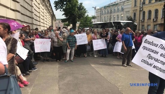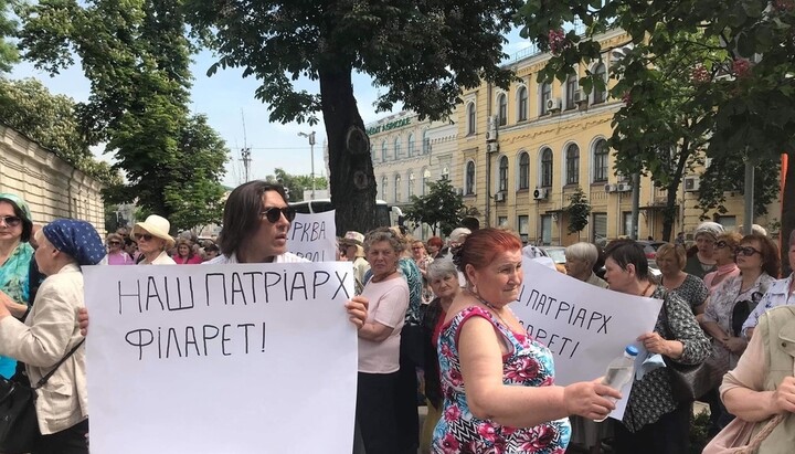 On May 24, 2019, people who consider themselves parishioners of the UOC KP, organized a picket at the place of the meeting of the “Holy Synod” of the OCU in support of “honorary patriarch” of this church structure Filaret Denisenko, reported in the Ukrainskaya Pravda online edition.