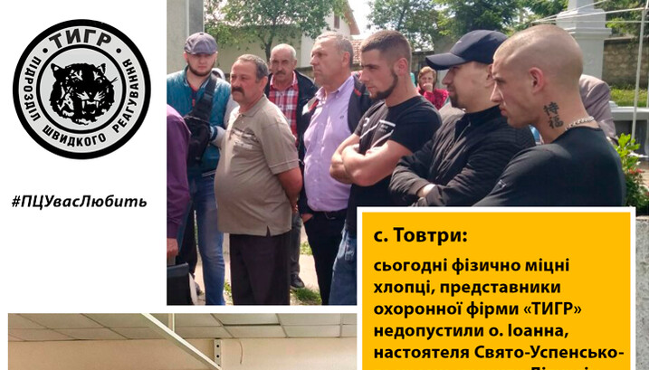 On June 2, 2019, young people of athletic build from the security company "Tiger" blocked the UOC community from entering the seized Holy Dormition Church in the village of Tovtry of the Zastavna district, Chernovtsy region, reports the press service of the Chernovtsy-Bukovina Eparchy.