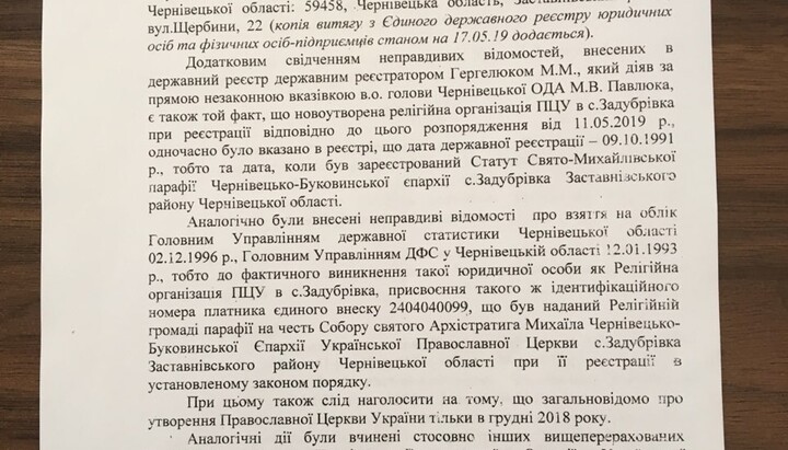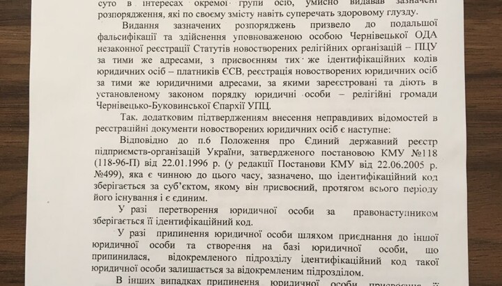 His Eminence emphasizes that the official deliberately neglects the requirements of the Law and the moral foundations of human decency, which leads to further falsification and registration of statutes of the newly established OCU communities at the same addresses and with the assignment of the same identification codes of legal entities which are possessed by the UOC communities in full conformity with the current legislation.