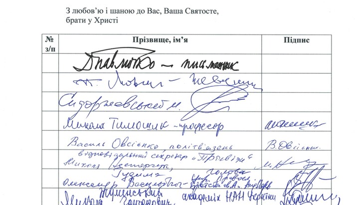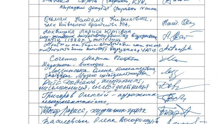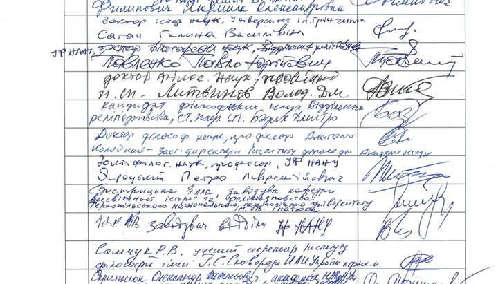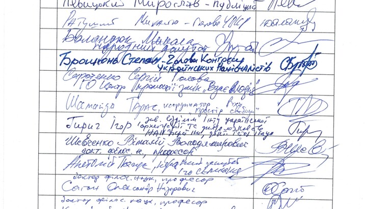 Among the signatories are religious scholars Alexander Sagan, Anatoly Kolodny and Lyudmila Filipovich, rector of the Ostrog Academy National University Igor Pasechnik, participants in the Revival Council of the Autocephalous Church of Ukraine Alexander Tkachuk and Alexander Gudyma, honorary academician of the Academy of Arts of Ukraine Nikolay Zhulinsky, general director of the National Historical Museum of Ukraine Tatiana Sosnovskaya , Director General of the Museum of Folk Architecture and Life Oksana Poviakel, Director General of the National Museum of Literature Galina Soroka, People’s Artist of Ukraine Taras Kompanichenko, writers Dmitry Pavlychko, Pavel Movchan, political prisoners Bogdan Goryn, Oles Shevchenko, Vasily Ovsienko and others.