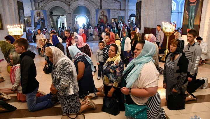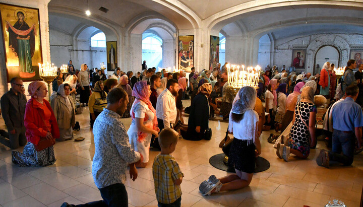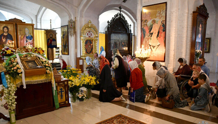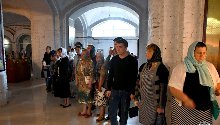 Believers worship the myrrh-secreting Icon of the Theotokos. Photo: site of the Volyn Eparchy of the UOC Believers worship the myrrh-secreting Icon of the Theotokos. Photo: site of the Volyn Eparchy of the UOC