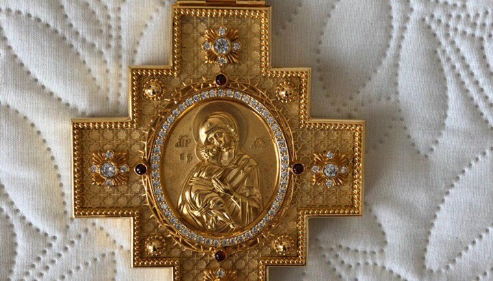 The panagia itself, which the ex-Metropolitan Simeon received in Moscow as a gift from the Primate of the Russian Orthodox Church Patriarch Kirill, had been made to commemorate the 100th anniversary of the opening of the Holy Council and the restoration of the patriarchate in the Russian Orthodox Church.