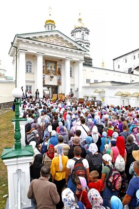 On August 4, on the eve of the commemoration of the Pochaev Icon of the Most Holy Theotokos, at 14:00 in the Transfiguration Cathedral of the Lavra there began small vespers with an akathist before the miraculous image, at 17:00 – vespers and matins.