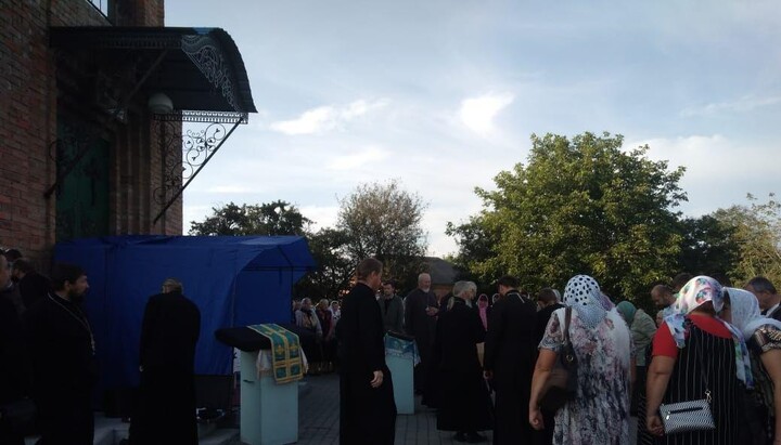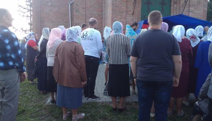 On August 7, 2019, the community of the UOC of Gvardeiskoye village in the Khmelnitsky region gathered for worship at the closed Holy Assumption temple, which had been illegally transferred to the OCU.