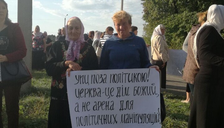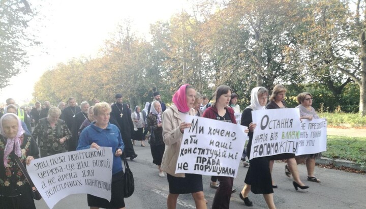 Mostly parishioners, who had suffered from the raider actions of the OCU in the region, came to meet with the President. In their hands they held posters calling to stop the persecution of the UOC and protect the constitutional rights of believers: “the UOC is outside politics,” “the Church is the House of God, not an arena for political manipulation”, “Mr. President, stop the persecution of believers of the UOC” and others.