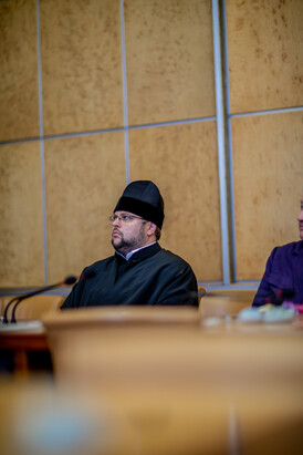 He informed the event participants about attempted seizures of temples using physical force by the right-wing organizations "DUK" and "Right Sector", illegal actions of the Governor of the Rivne region Alexei Muliarenko and obstructions from government officials to the construction of new churches of the UOC.