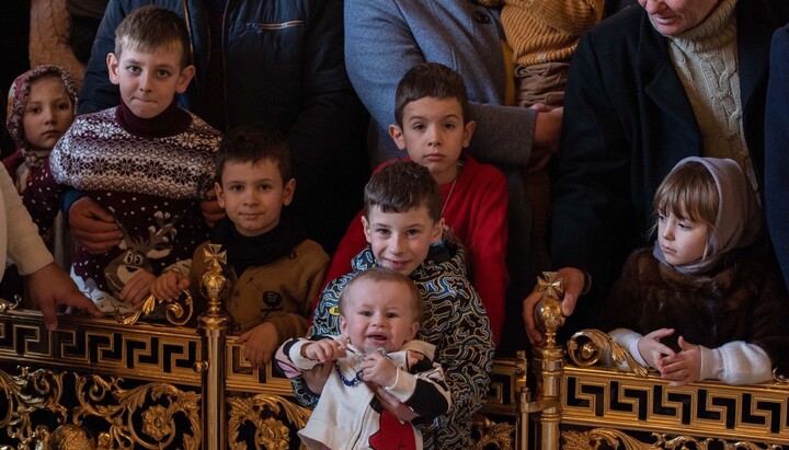 After the liturgy, Metropolitan Onuphry visited the orphanage in the village of Molnitsa, operating at the Bancheny Monastery, to congratulate 415 children on Christmas holidays.