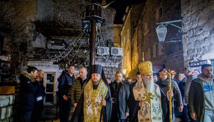 On January 27, 2020, the Head of the Representation of the UOC to European international Organizations, Bishop Victor (Kotsaba) of Baryshevka, and the Deputy Head of the Department for External Church Relations of the UOC, Archpriest Nikolai Danilevich, took part in the prayer procession of Orthodox believers in Budva (Montenegro).