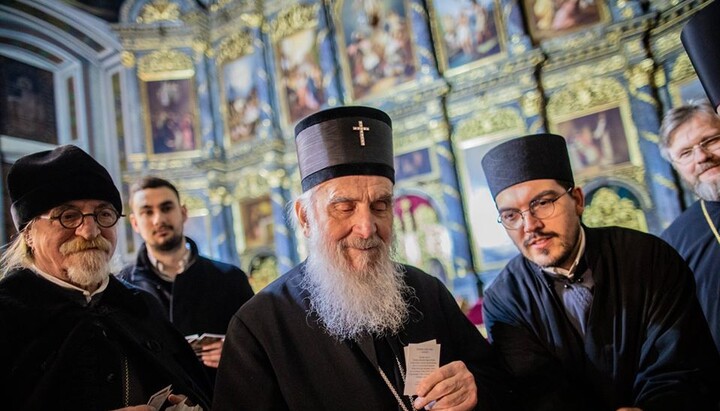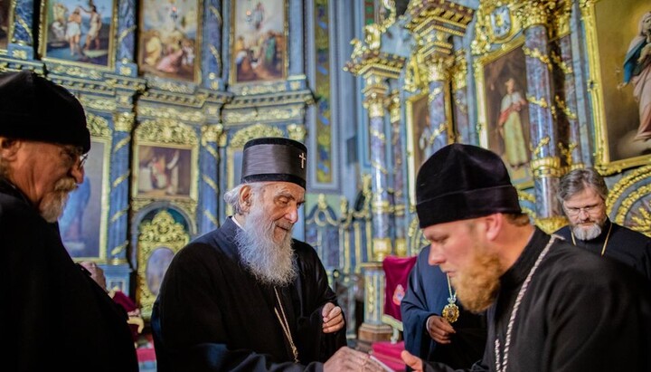 After the service, Patriarch Irinej met with representatives of the UOC.