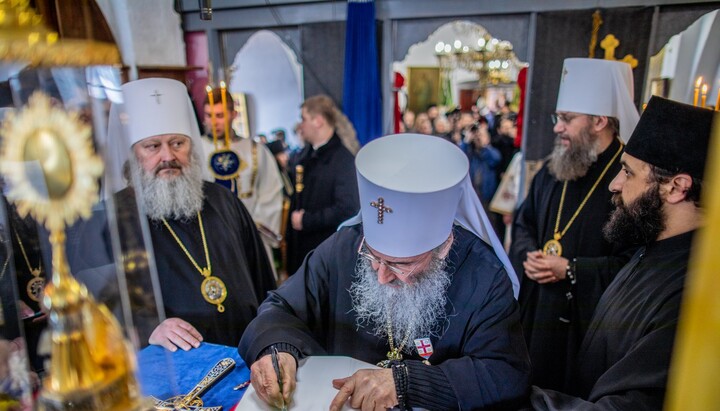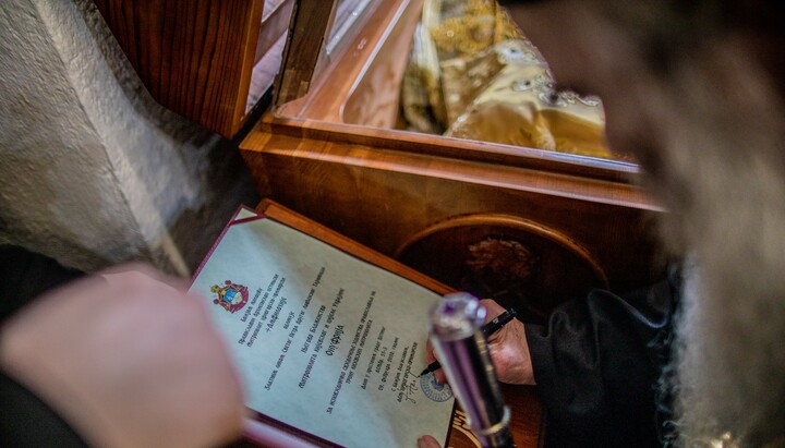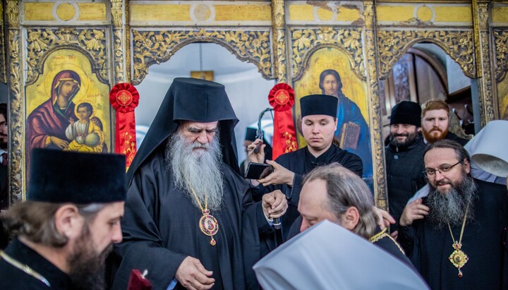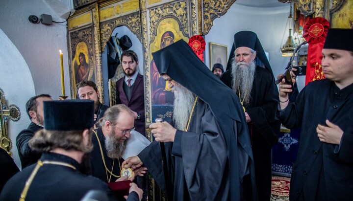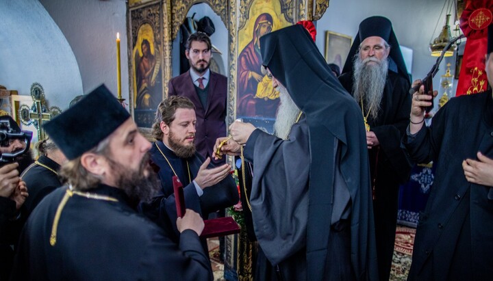 Met. Amphilochios of Montenegro and the Littoral presented His Beatitude Onuphry with the Order of St. Petar II Njegoš for his efforts in protecting the Orthodox faith.