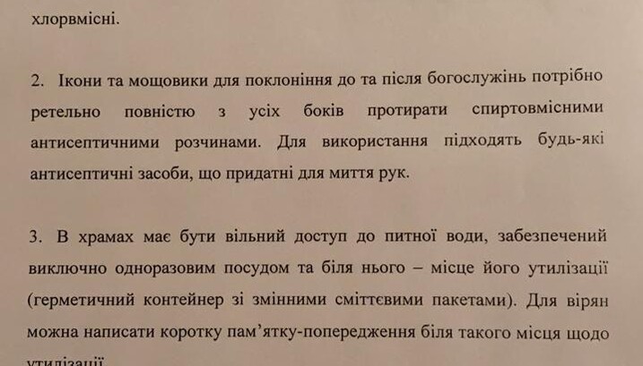 Priests must ensure that the temples are properly ventilated, especially during divine services, and that the drinks served to the believers after communion should be poured into disposable cups.