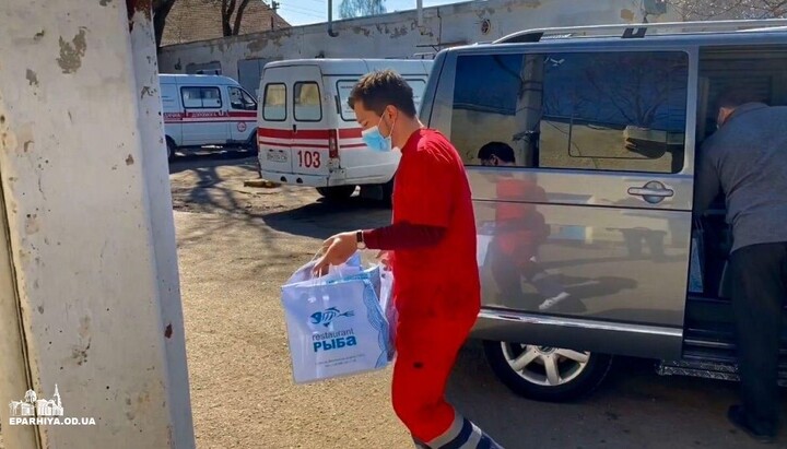 During the coronavirus quarantine, 255 employees of all ambulance crews of the city of Odessa receive hot meals from volunteers of the Odessa Eparchy.