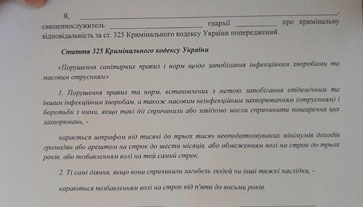 At the end of the warning of criminal liability, clergymen must sign that they understand the essence of this article of the Criminal Code.