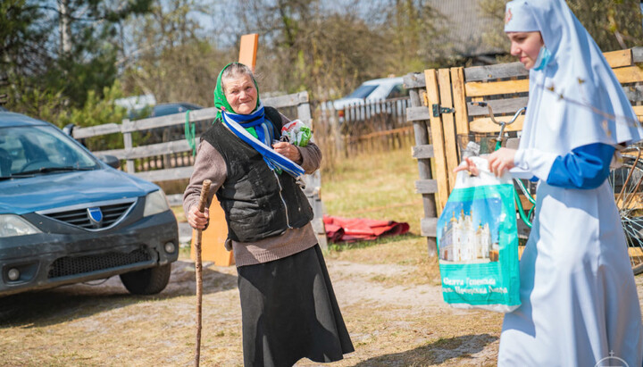 On April 28, 2020, with the blessing of His Beatitude Metropolitan Onuphry of Kyiv and All Ukraine, the sisters of mercy of the Sts. Martha and Mary Convent in Kyiv delivered humanitarian aid to the residents of the village of Lichmany of the Ovruch district, Zhytomyr region, who suffered from the fire, reports the UOC Information and Education Department.