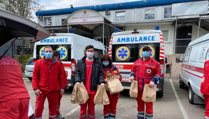 As reported earlier, during the coronavirus quarantine, the Odessa Eparchy organized hot meals for the city ambulance crews, employees of the Unified Operational Dispatch Service of the Odessa Regional Emergency Medical Centre, as well as personnel of the Odessa City Children's Hospital and large families.