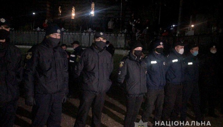 The believers called the police, who arrived at the scene, and drove the followers of the structure of Epiphany Dumenko from the churchyard.