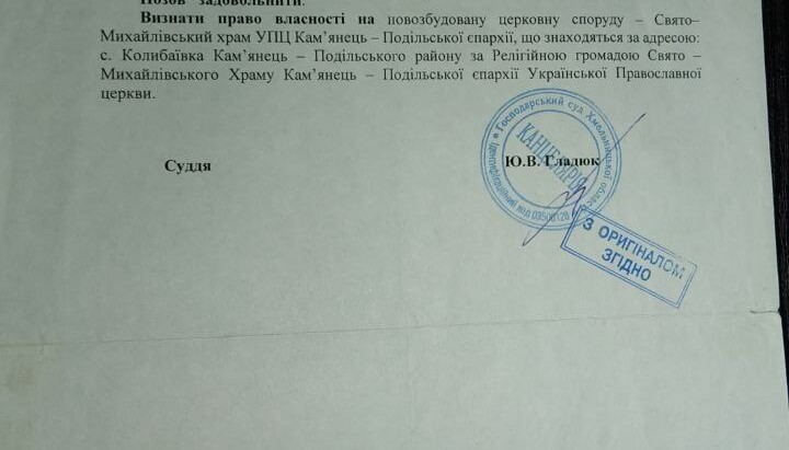 It is worth emphasizing that back in 2005, the Economic Court of the Khmelnytsky region recognized the right of ownership of the UOC community to the St. Michael's Church in the village of Kolybayivka.