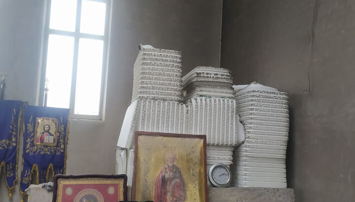 " the altar, the throne and the credence were completely burnt out, the fire engulfed the middle part of the temple. The chalices were all melted, but the icons survived a bit. The church had just been built, not even finished. This is my premises, my private property," said the priest.