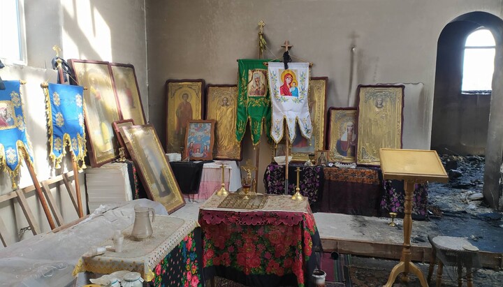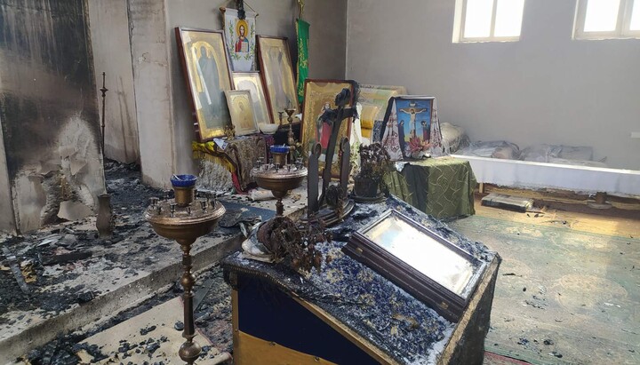 Unknown persons threw Molotov cocktails at the UOC church in the village of Kordyshev in the Ternopil region: the altar, the throne and the credence were burnt down.