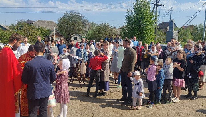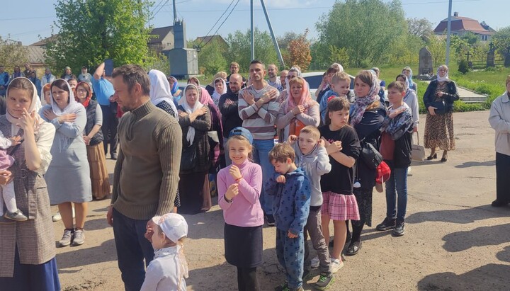 On May 14, 2023, in Boyarka, Kyiv region, more than a hundred parishioners of the UOC prayed in the open air in front of the seized St. Michael's Church, reports the Telegram channel "DOZOR on Kozak 1".